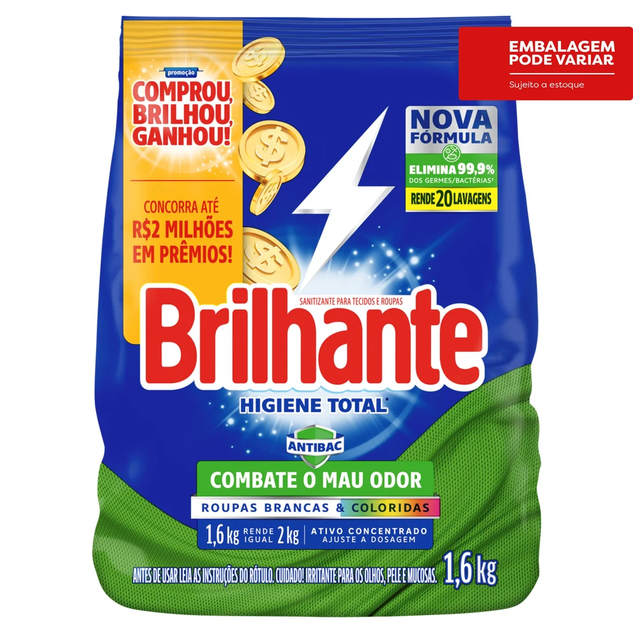Kit c/ 08 und - Lava-Roupas em Pó Brilhante Roupas Brancas e Coloridas Higiene Total 1.6KG quantidade