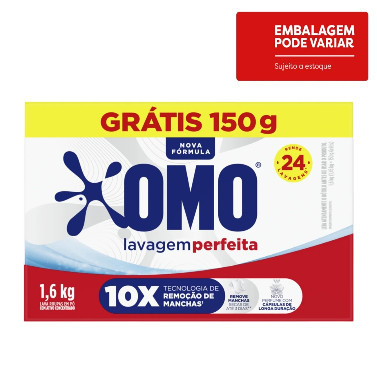 / Kit c/09 und – Lava-Roupas Pó Omo Lavagem Perfeita Caixa 1,6kg Grátis 150g