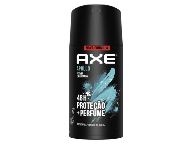 Com a nova fórmula do Antitranspirante Aerosol Axe Apollo, com uma mistura perfeita de vetiver e mandarina, você se sentirá mais incrível, fresco e protegido todo o dia. Sua fórmula com 0% álcool* garante proteção contra o mau odor por até 48h e possui um perfume irresistível com notas cítricas para uma sensação de frescor que dura o dia inteiro. Para aplicar, agite bem o antitranspirante Axe Apollo antes de cada uso, aplique somente nas axilas a uma distância de 15 cm e sinta a diferença! A fragrância vetiver e mandarina te deixa totalmente fresco e 100% pronto para o que quer que você faça. A lata do antitranspirante Aerosol Axe Apollo vem com um novo design numa embalagem com metal infinitamente reciclável, e para manter este ciclo, por favor recicle também ela! Não contém CFC, sendo inofensivo para a camada de Ozônio. Não importa o que aconteça, você está pronto, mais fresco e o planeta mais limpo. Axe foi criada para ajudar você a ser o seu melhor, tanto no trabalho como na sua vida pessoal. É um antitranspirante de longa duração, o que significa que você ficará perfumado ao longo do dia, mantendo o seu estilo e a sua confiança. Experimente também outras fragrâncias dos antitranspirantes Axe. *Não contém álcool etílico.Com a nova fórmula do Antitranspirante Aerosol Axe Apollo, com uma mistura perfeita de vetiver e mandarina, você se sentirá mais incrível, fresco e protegido todo o dia. Sua fórmula com 0% álcool* garante proteção contra o mau odor por até 48h e possui um perfume irresistível com notas cítricas para uma sensação de frescor que dura o dia inteiro. Para aplicar, agite bem o antitranspirante Axe Apollo antes de cada uso, aplique somente nas axilas a uma distância de 15 cm e sinta a diferença! A fragrância vetiver e mandarina te deixa totalmente fresco e 100% pronto para o que quer que você faça. A lata do antitranspirante Aerosol Axe Apollo vem com um novo design numa embalagem com metal infinitamente reciclável, e para manter este ciclo, por favor recicle também ela! Não contém CFC, sendo inofensivo para a camada de Ozônio. Não importa o que aconteça, você está pronto, mais fresco e o planeta mais limpo. Axe foi criada para ajudar você a ser o seu melhor, tanto no trabalho como na sua vida pessoal. É um antitranspirante de longa duração, o que significa que você ficará perfumado ao longo do dia, mantendo o seu estilo e a sua confiança. Experimente também outras fragrâncias dos antitranspirantes Axe. *Não contém álcool etílico.